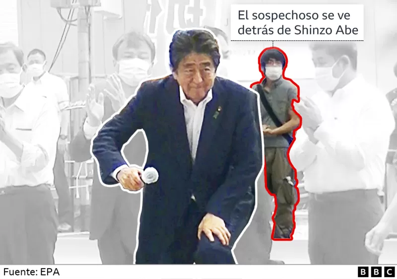 El atacante fue captado por las cámaras parado a corta distancia detrás de Abe, cuando el político tomó el podio para dirigirse a los votantes frente a la estación ferroviaria Yamato-Saidaiji en Nara.